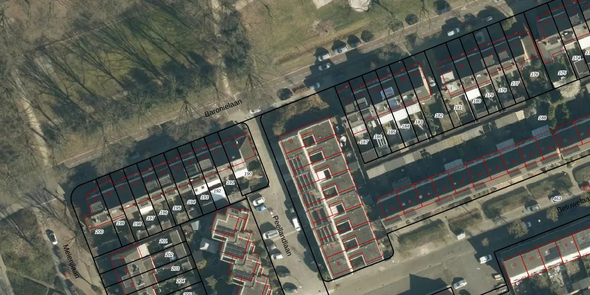 Het perceel waarop Peellandlaan 52 staat heeft een oppervlakte van 6205 m². Dit is een zeer groot perceel. De perceeloppervlakte wordt geregistreerd door het Kadaster. Gedetailleerde informatie over de maten van dit perceel kunt u vinden in het rapport Kadastrale kaart met maatvoering van Peellandlaan 52.