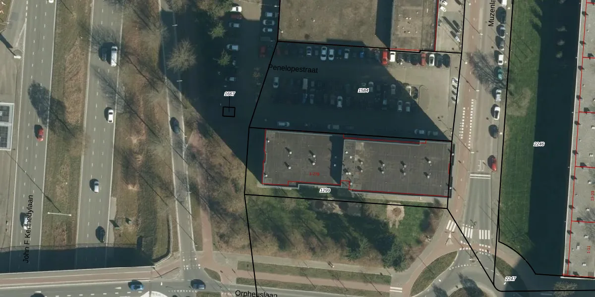 Het perceel waarop Penelopestraat 107 staat heeft een oppervlakte van 1528 m². Dit is een zeer groot perceel. De perceeloppervlakte wordt geregistreerd door het Kadaster. Gedetailleerde informatie over de maten van dit perceel kunt u vinden in het rapport Kadastrale kaart met maatvoering van Penelopestraat 107.
