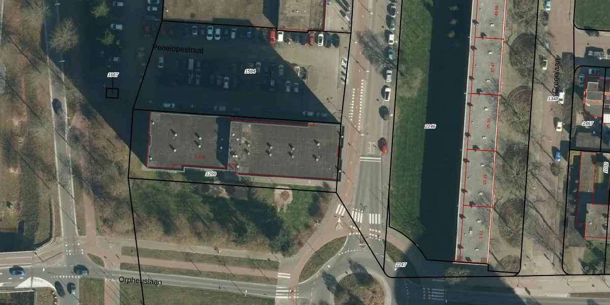 Het perceel waarop Penelopestraat 173 staat heeft een oppervlakte van 1528 m². Dit is een zeer groot perceel. De perceeloppervlakte wordt geregistreerd door het Kadaster. Gedetailleerde informatie over de maten van dit perceel kunt u vinden in het rapport Kadastrale kaart met maatvoering van Penelopestraat 173.