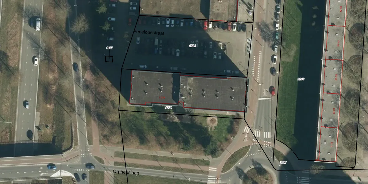 Het perceel waarop Penelopestraat 183 staat heeft een oppervlakte van 1528 m². Dit is een zeer groot perceel. De perceeloppervlakte wordt geregistreerd door het Kadaster. Gedetailleerde informatie over de maten van dit perceel kunt u vinden in het rapport Kadastrale kaart met maatvoering van Penelopestraat 183.