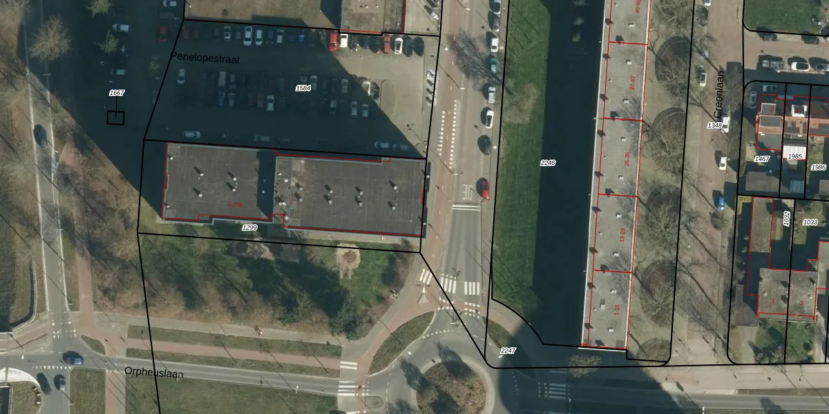 Het perceel waarop Penelopestraat 197 staat heeft een oppervlakte van 1528 m². Dit is een zeer groot perceel. De perceeloppervlakte wordt geregistreerd door het Kadaster. Gedetailleerde informatie over de maten van dit perceel kunt u vinden in het rapport Kadastrale kaart met maatvoering van Penelopestraat 197.