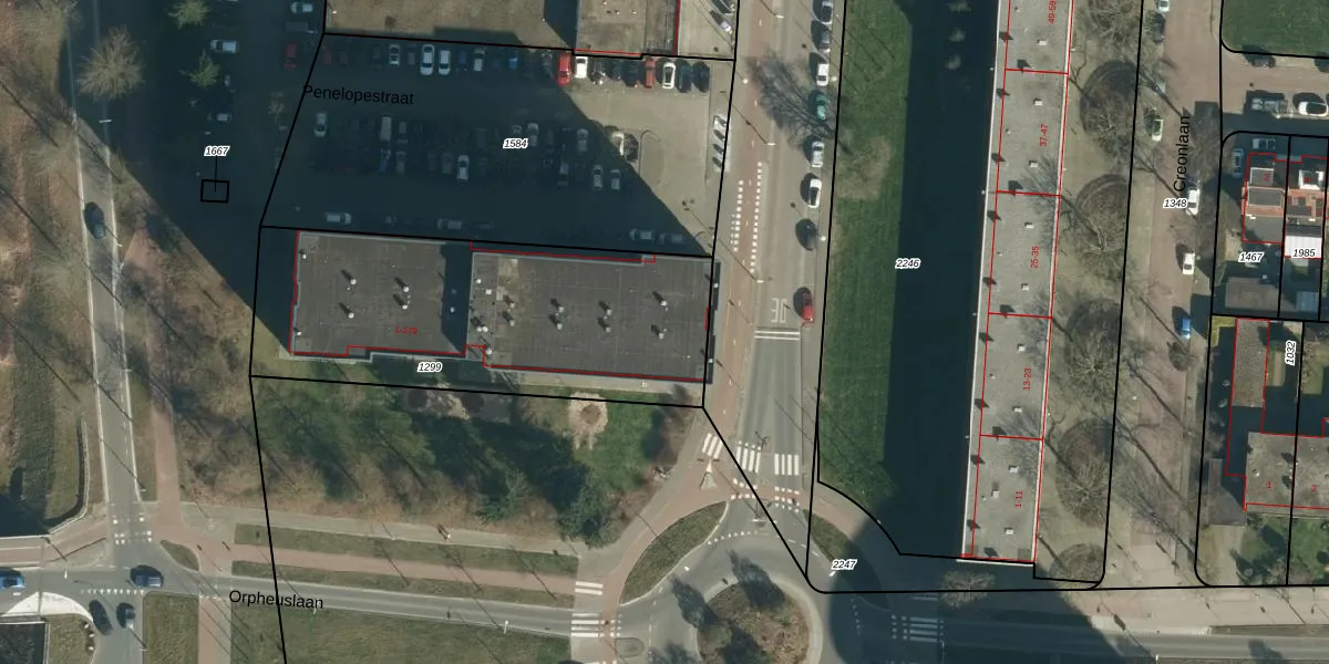 Het perceel waarop Penelopestraat 199 staat heeft een oppervlakte van 1528 m². Dit is een zeer groot perceel. De perceeloppervlakte wordt geregistreerd door het Kadaster. Gedetailleerde informatie over de maten van dit perceel kunt u vinden in het rapport Kadastrale kaart met maatvoering van Penelopestraat 199.