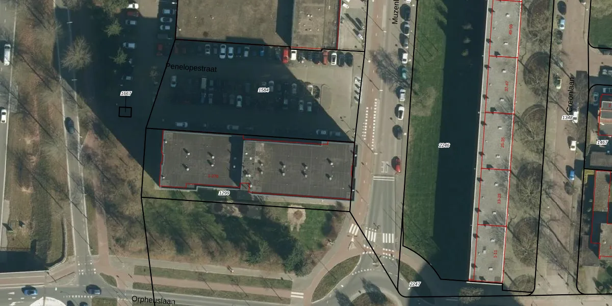 Het perceel waarop Penelopestraat 63 staat heeft een oppervlakte van 1528 m². Dit is een zeer groot perceel. De perceeloppervlakte wordt geregistreerd door het Kadaster. Gedetailleerde informatie over de maten van dit perceel kunt u vinden in het rapport Kadastrale kaart met maatvoering van Penelopestraat 63.