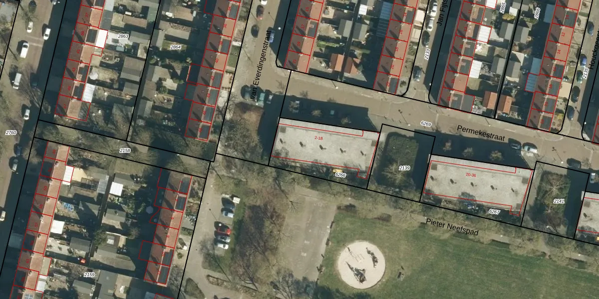 Het perceel waarop Permekestraat 12 staat heeft een oppervlakte van 612 m². Dit is een groot perceel. De perceeloppervlakte wordt geregistreerd door het Kadaster. Gedetailleerde informatie over de maten van dit perceel kunt u vinden in het rapport Kadastrale kaart met maatvoering van Permekestraat 12.
