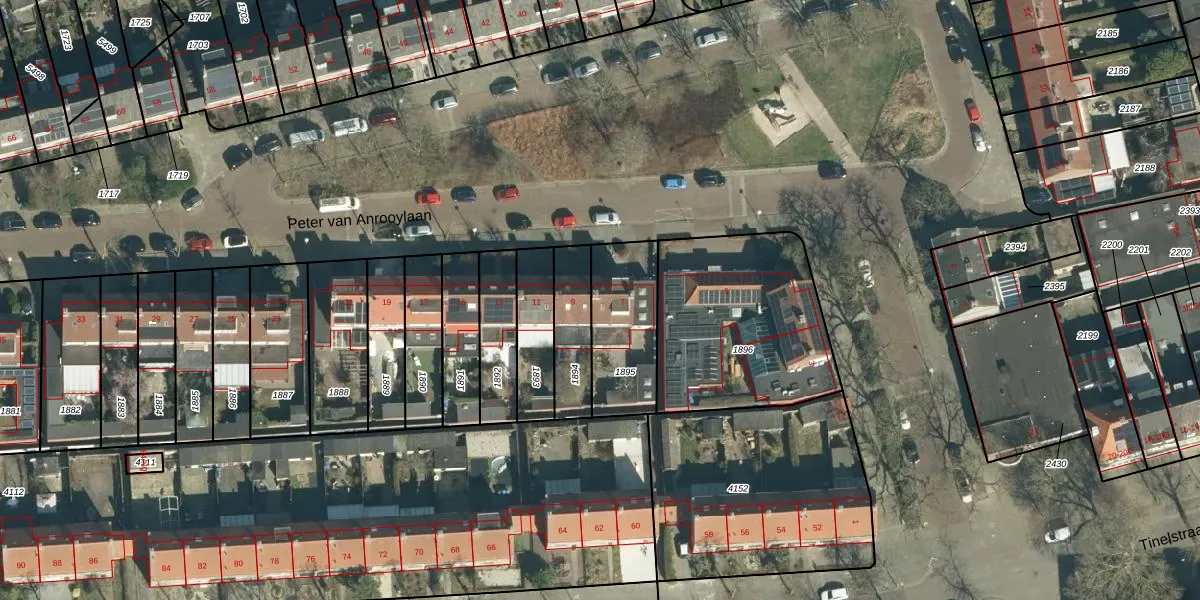Gebruik de zoekbalk of klik op een perceel voor informatie over de adressen binnen dit perceel.