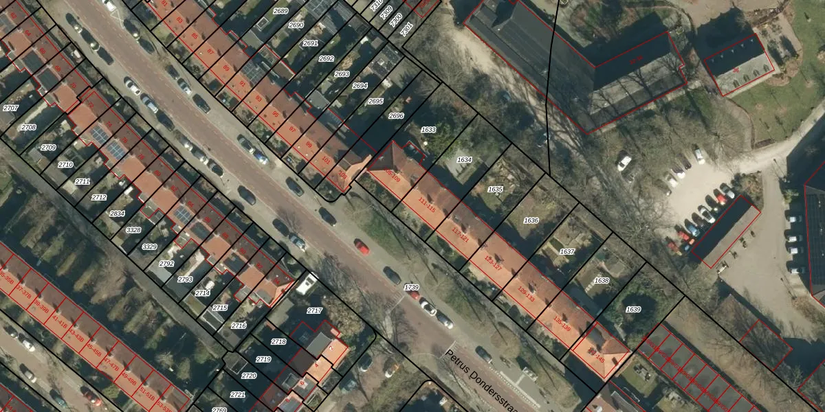 Het perceel waarop Petrus Dondersstraat 111 staat heeft een oppervlakte van 346 m². Dit is een groot perceel. De perceeloppervlakte wordt geregistreerd door het Kadaster. Gedetailleerde informatie over de maten van dit perceel kunt u vinden in het rapport Kadastrale kaart met maatvoering van Petrus Dondersstraat 111.