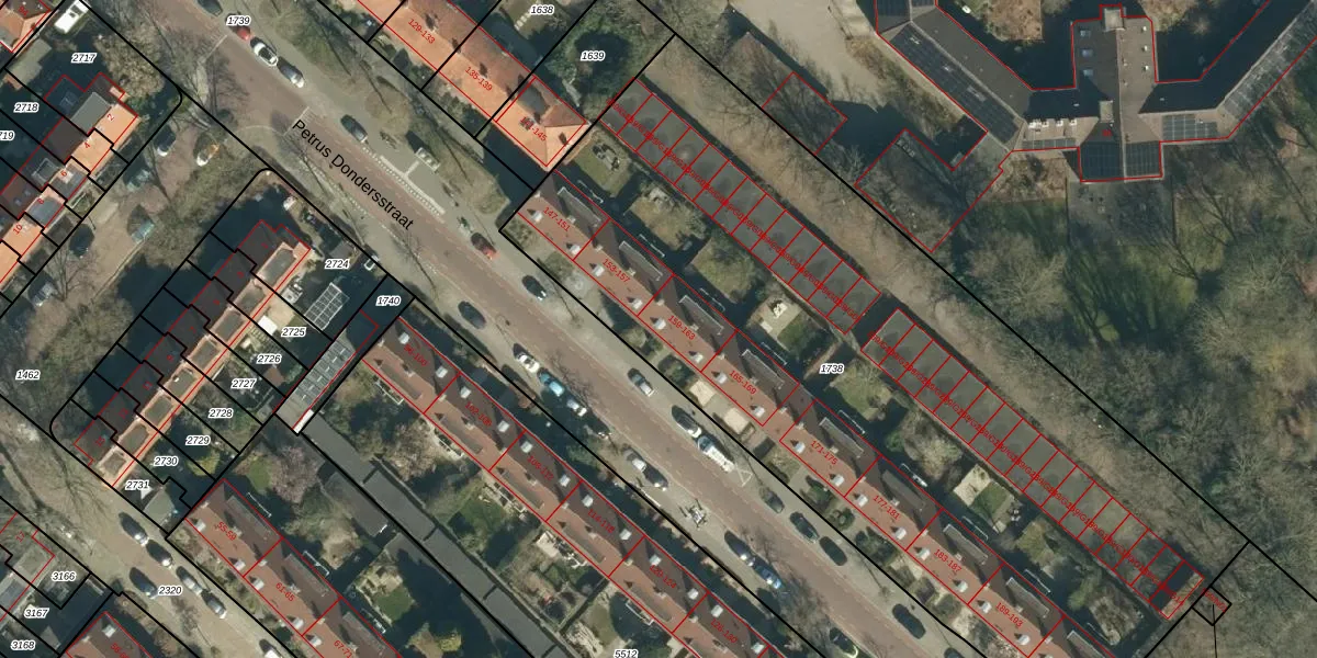 Het perceel waarop Petrus Dondersstraat 159 staat heeft een oppervlakte van 4675 m². Dit is een zeer groot perceel. De perceeloppervlakte wordt geregistreerd door het Kadaster. Gedetailleerde informatie over de maten van dit perceel kunt u vinden in het rapport Kadastrale kaart met maatvoering van Petrus Dondersstraat 159.
