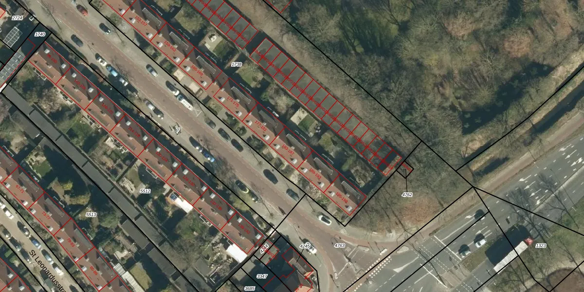 Het perceel waarop Petrus Dondersstraat 187 staat heeft een oppervlakte van 4675 m². Dit is een zeer groot perceel. De perceeloppervlakte wordt geregistreerd door het Kadaster. Gedetailleerde informatie over de maten van dit perceel kunt u vinden in het rapport Kadastrale kaart met maatvoering van Petrus Dondersstraat 187.