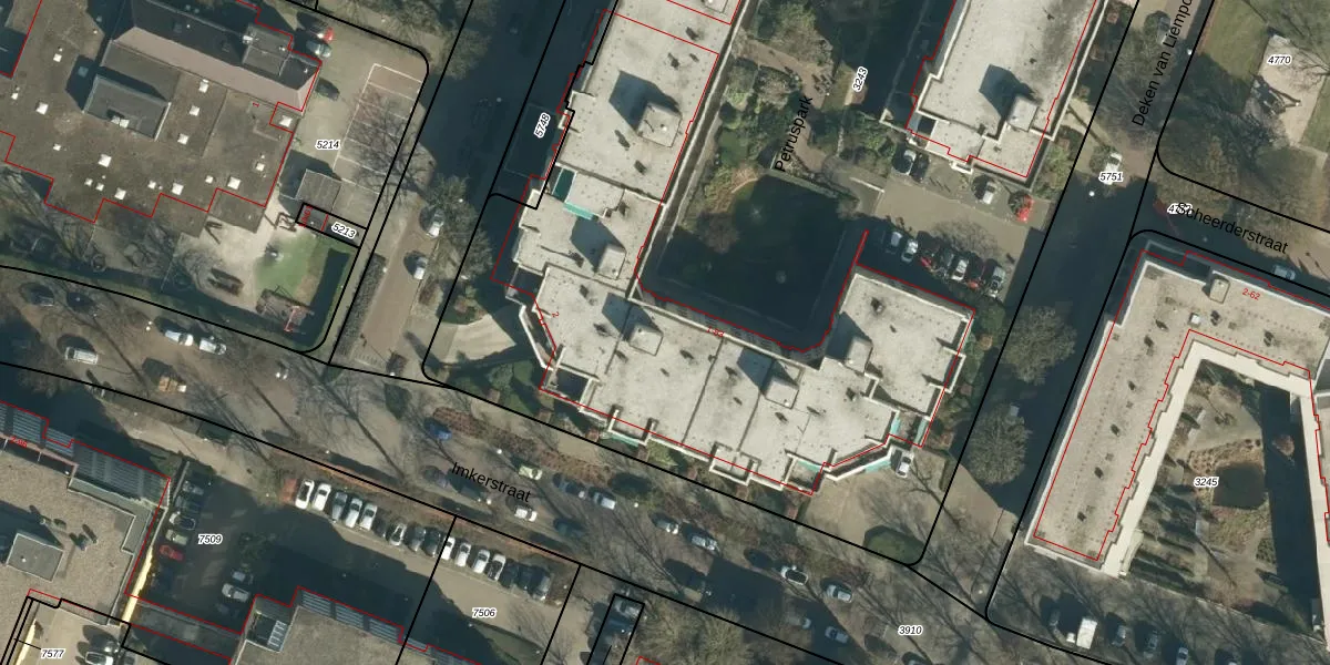 Het perceel waarop Petruspark 24 staat heeft een oppervlakte van 9342 m². Dit is een zeer groot perceel. De perceeloppervlakte wordt geregistreerd door het Kadaster. Gedetailleerde informatie over de maten van dit perceel kunt u vinden in het rapport Kadastrale kaart met maatvoering van Petruspark 24.