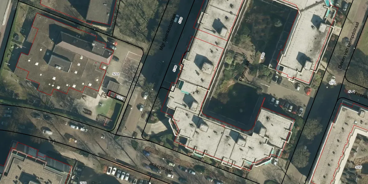 Het perceel waarop Petruspark 40 staat heeft een oppervlakte van 9342 m². Dit is een zeer groot perceel. De perceeloppervlakte wordt geregistreerd door het Kadaster. Gedetailleerde informatie over de maten van dit perceel kunt u vinden in het rapport Kadastrale kaart met maatvoering van Petruspark 40.