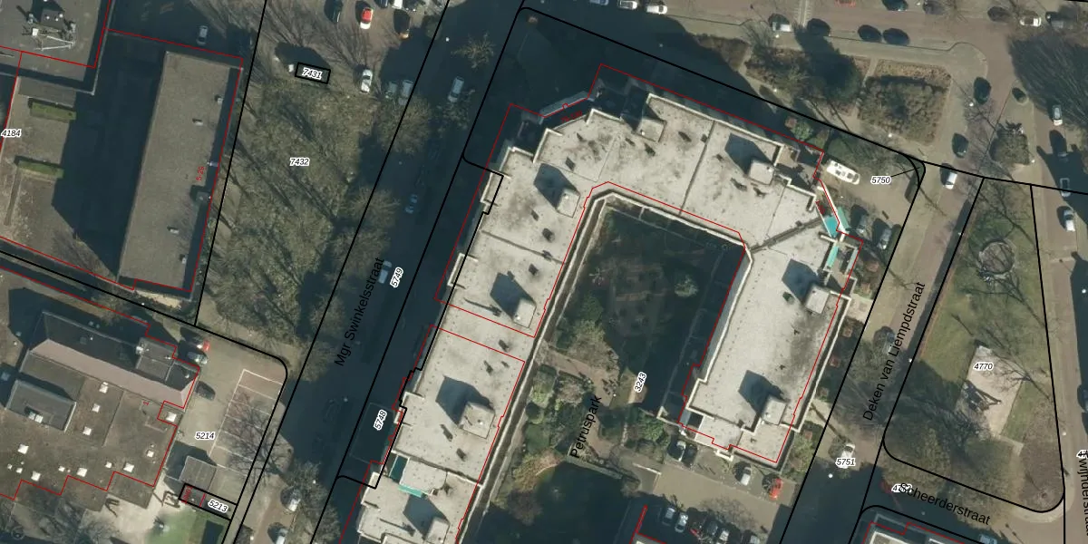 Het perceel waarop Petruspark 57 staat heeft een oppervlakte van 9342 m². Dit is een zeer groot perceel. De perceeloppervlakte wordt geregistreerd door het Kadaster. Gedetailleerde informatie over de maten van dit perceel kunt u vinden in het rapport Kadastrale kaart met maatvoering van Petruspark 57.
