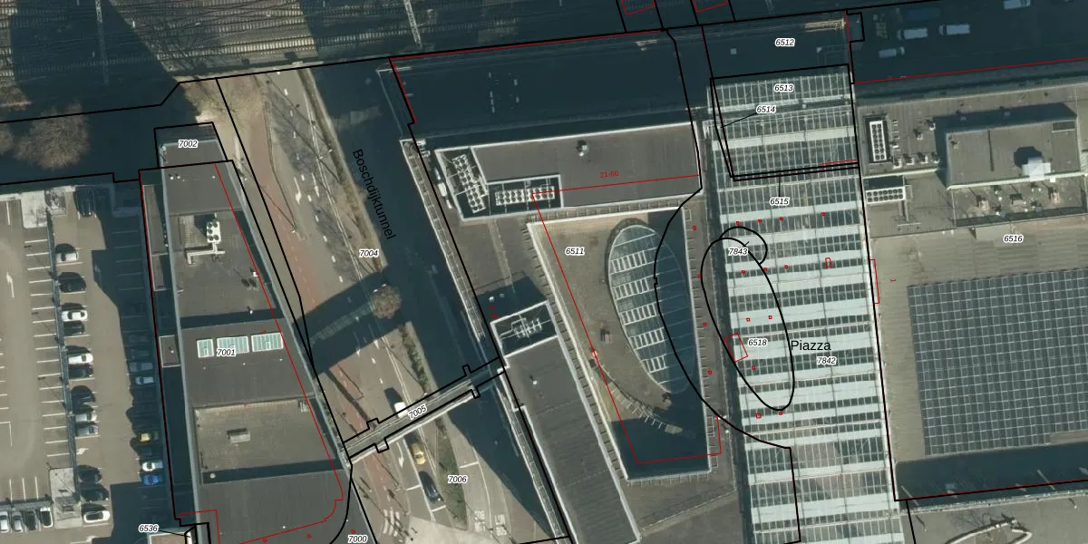 Het perceel waarop Piazza 54 staat heeft een oppervlakte van 4050 m². Dit is een zeer groot perceel. De perceeloppervlakte wordt geregistreerd door het Kadaster. Gedetailleerde informatie over de maten van dit perceel kunt u vinden in het rapport Kadastrale kaart met maatvoering van Piazza 54.