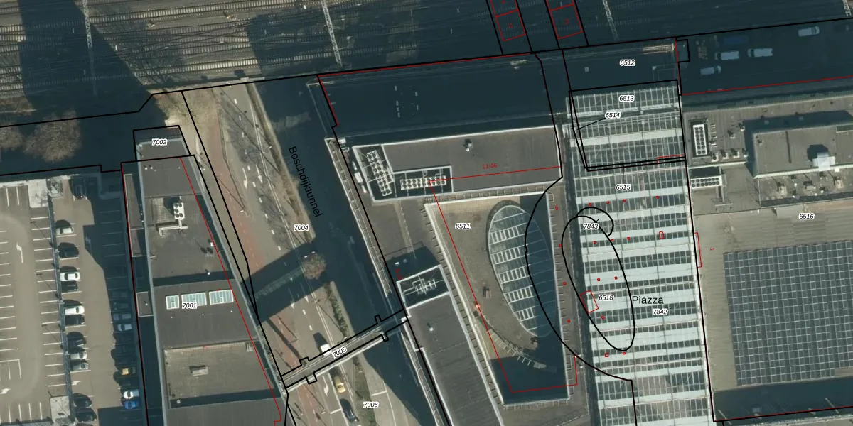 Het perceel waarop Piazza 62 staat heeft een oppervlakte van 4050 m². Dit is een zeer groot perceel. De perceeloppervlakte wordt geregistreerd door het Kadaster. Gedetailleerde informatie over de maten van dit perceel kunt u vinden in het rapport Kadastrale kaart met maatvoering van Piazza 62.