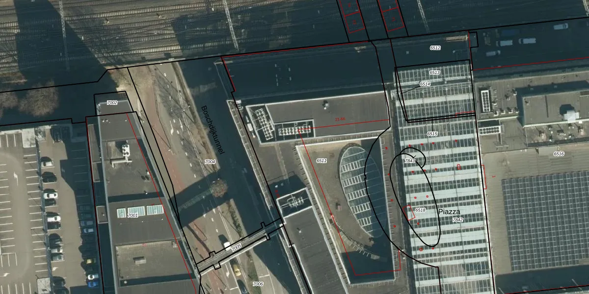 Het perceel waarop Piazza 64 staat heeft een oppervlakte van 4050 m². Dit is een zeer groot perceel. De perceeloppervlakte wordt geregistreerd door het Kadaster. Gedetailleerde informatie over de maten van dit perceel kunt u vinden in het rapport Kadastrale kaart met maatvoering van Piazza 64.