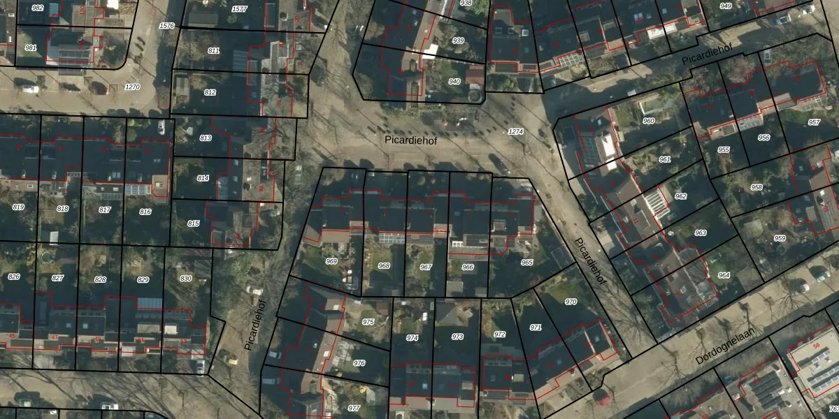 Het perceel waarop Picardiehof 6 staat heeft een oppervlakte van 301 m². Dit is een groot perceel. De perceeloppervlakte wordt geregistreerd door het Kadaster. Gedetailleerde informatie over de maten van dit perceel kunt u vinden in het rapport Kadastrale kaart met maatvoering van Picardiehof 6.