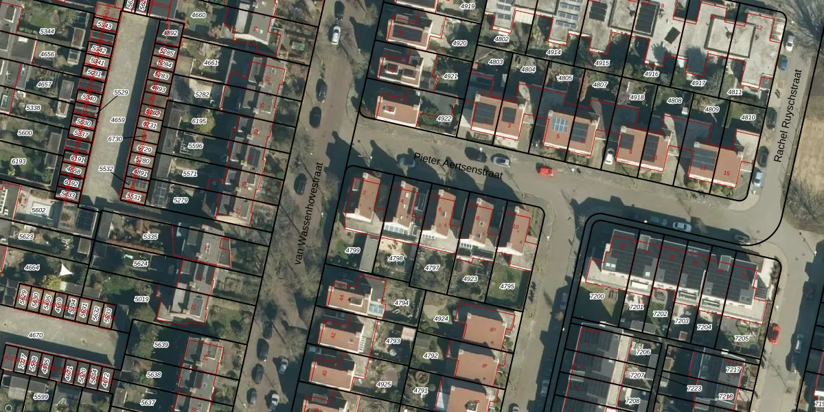 Gebruik de zoekbalk of klik op een perceel voor informatie over de adressen binnen dit perceel.