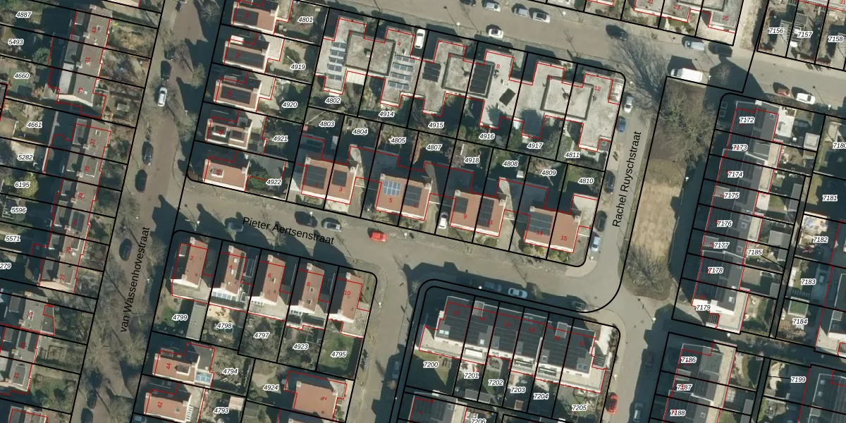 Gebruik de zoekbalk of klik op een perceel voor informatie over de adressen binnen dit perceel.