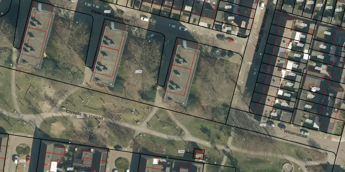 Het perceel waarop Pieter Lastmanstraat 23 staat heeft een oppervlakte van 5500 m². Dit is een zeer groot perceel. De perceeloppervlakte wordt geregistreerd door het Kadaster. Gedetailleerde informatie over de maten van dit perceel kunt u vinden in het rapport Kadastrale kaart met maatvoering van Pieter Lastmanstraat 23.