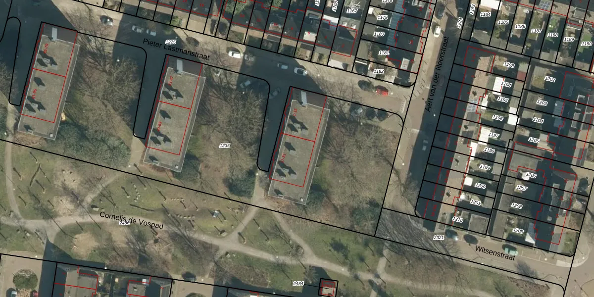 Het perceel waarop Pieter Lastmanstraat 25 staat heeft een oppervlakte van 5500 m². Dit is een zeer groot perceel. De perceeloppervlakte wordt geregistreerd door het Kadaster. Gedetailleerde informatie over de maten van dit perceel kunt u vinden in het rapport Kadastrale kaart met maatvoering van Pieter Lastmanstraat 25.