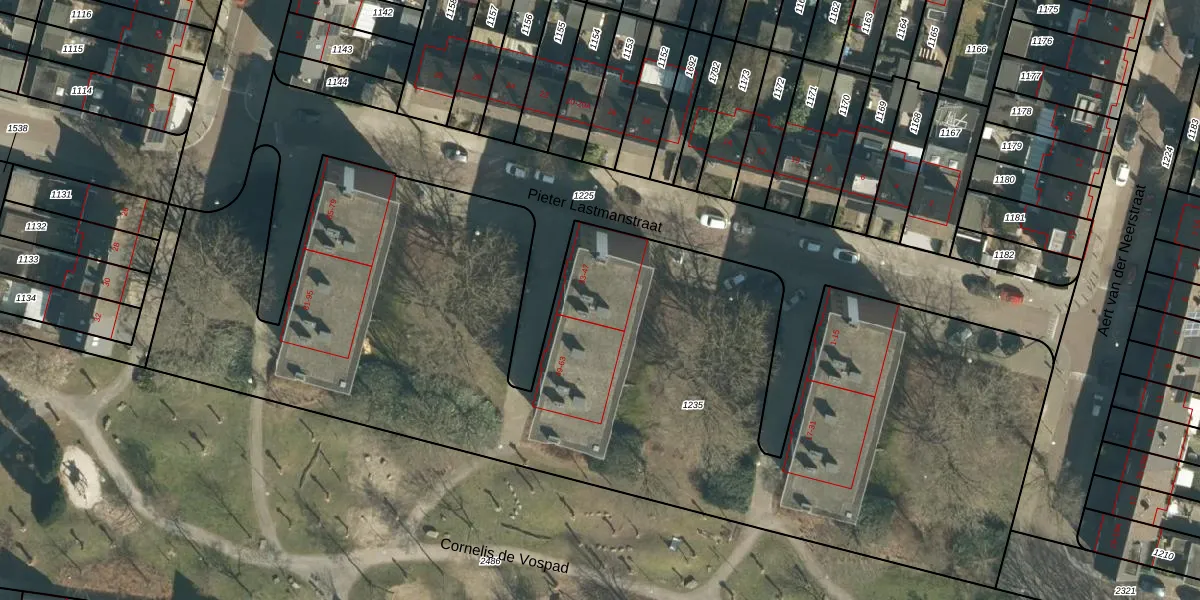 Het perceel waarop Pieter Lastmanstraat 43 staat heeft een oppervlakte van 5500 m². Dit is een zeer groot perceel. De perceeloppervlakte wordt geregistreerd door het Kadaster. Gedetailleerde informatie over de maten van dit perceel kunt u vinden in het rapport Kadastrale kaart met maatvoering van Pieter Lastmanstraat 43.