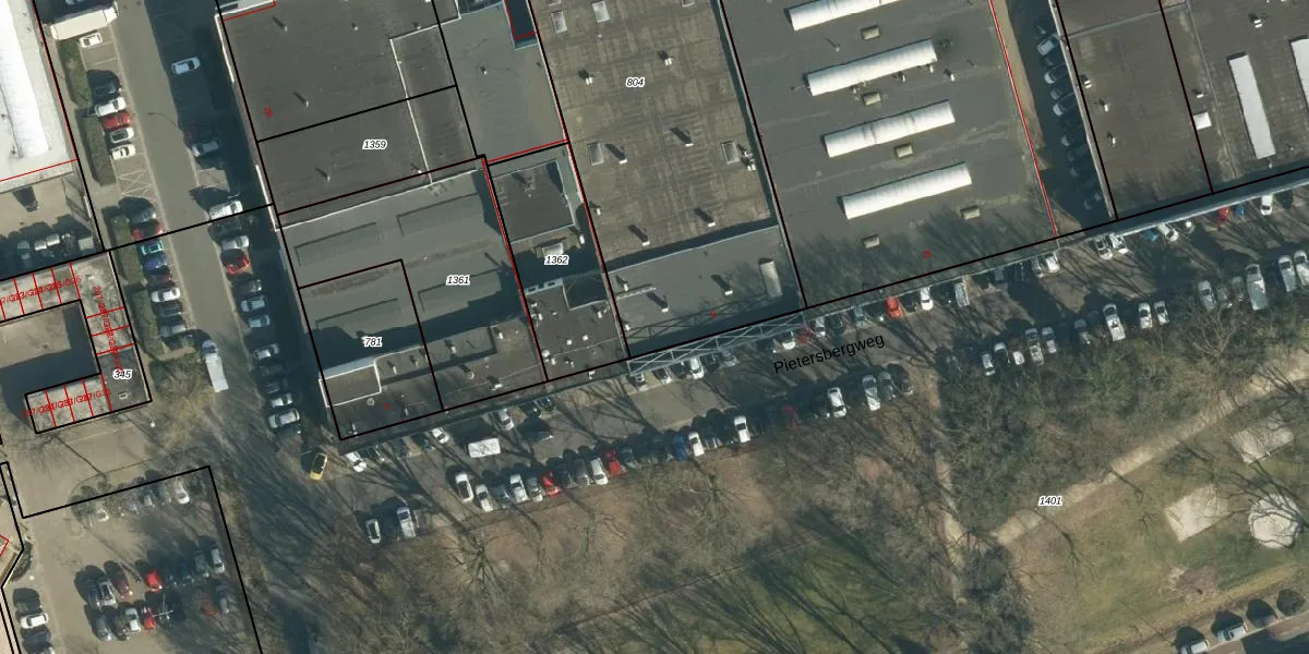 Het perceel waarop Pietersbergweg 9 staat heeft een oppervlakte van 1959 m². Dit is een zeer groot perceel. De perceeloppervlakte wordt geregistreerd door het Kadaster. Gedetailleerde informatie over de maten van dit perceel kunt u vinden in het rapport Kadastrale kaart met maatvoering van Pietersbergweg 9.