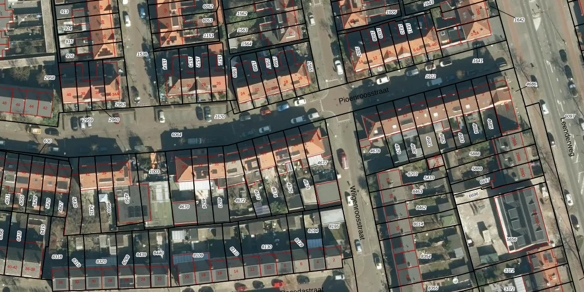 Gebruik de zoekbalk of klik op een perceel voor informatie over de adressen binnen dit perceel.