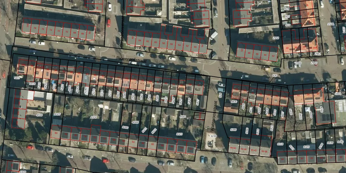 Het perceel waarop Pioenroosstraat 63 staat heeft een oppervlakte van 92 m². Dit is een klein perceel. De perceeloppervlakte wordt geregistreerd door het Kadaster. Gedetailleerde informatie over de maten van dit perceel kunt u vinden in het rapport Kadastrale kaart met maatvoering van Pioenroosstraat 63.