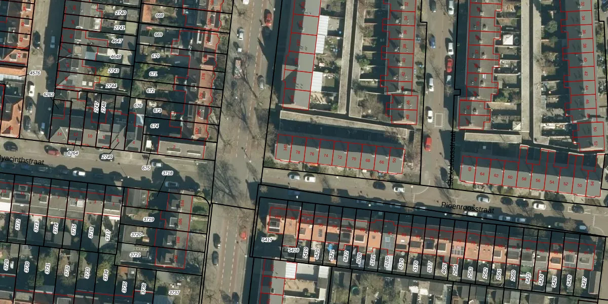 Het perceel waarop Pioenroosstraat 78 staat heeft een oppervlakte van 6756 m². Dit is een zeer groot perceel. De perceeloppervlakte wordt geregistreerd door het Kadaster. Gedetailleerde informatie over de maten van dit perceel kunt u vinden in het rapport Kadastrale kaart met maatvoering van Pioenroosstraat 78.