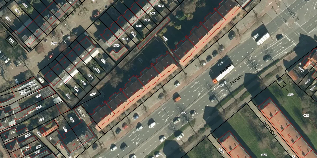 Het perceel waarop Piuslaan 104 staat heeft een oppervlakte van 3538 m². Dit is een zeer groot perceel. De perceeloppervlakte wordt geregistreerd door het Kadaster. Gedetailleerde informatie over de maten van dit perceel kunt u vinden in het rapport Kadastrale kaart met maatvoering van Piuslaan 104.