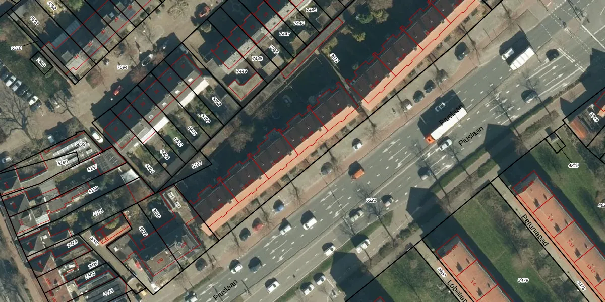 Het perceel waarop Piuslaan 108 staat heeft een oppervlakte van 3538 m². Dit is een zeer groot perceel. De perceeloppervlakte wordt geregistreerd door het Kadaster. Gedetailleerde informatie over de maten van dit perceel kunt u vinden in het rapport Kadastrale kaart met maatvoering van Piuslaan 108.