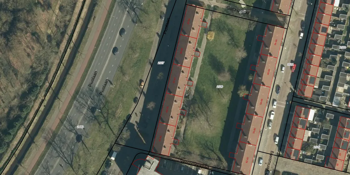 Het perceel waarop Piuslaan 63 staat heeft een oppervlakte van 5186 m². Dit is een zeer groot perceel. De perceeloppervlakte wordt geregistreerd door het Kadaster. Gedetailleerde informatie over de maten van dit perceel kunt u vinden in het rapport Kadastrale kaart met maatvoering van Piuslaan 63.