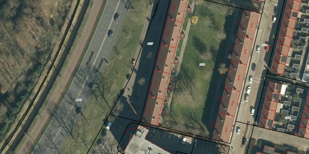 Het perceel waarop Piuslaan 69 staat heeft een oppervlakte van 5186 m². Dit is een zeer groot perceel. De perceeloppervlakte wordt geregistreerd door het Kadaster. Gedetailleerde informatie over de maten van dit perceel kunt u vinden in het rapport Kadastrale kaart met maatvoering van Piuslaan 69.