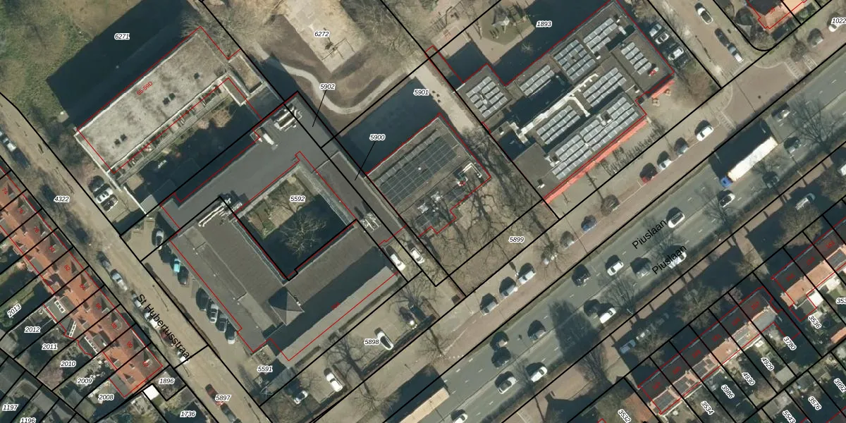 Piuslaan 70 is gelegen op kadastraal perceel STM00E5901. Deze kadastrale aanduiding is uniek en wordt gebruikt door het Kadaster om eigendomsrechten en andere zakelijke rechten vast te leggen. Het perceel maakt onderdeel uit van de kadastrale gemeente Stratum.