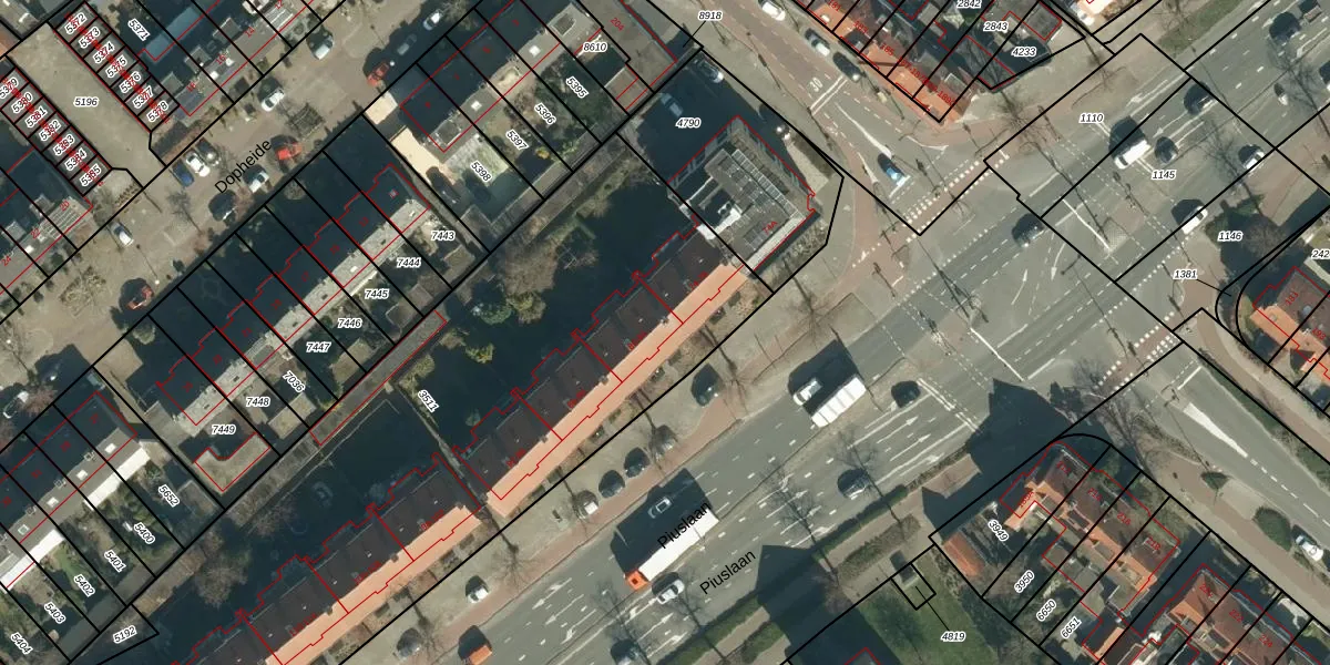 Het perceel waarop Piuslaan 80 staat heeft een oppervlakte van 3538 m². Dit is een zeer groot perceel. De perceeloppervlakte wordt geregistreerd door het Kadaster. Gedetailleerde informatie over de maten van dit perceel kunt u vinden in het rapport Kadastrale kaart met maatvoering van Piuslaan 80.