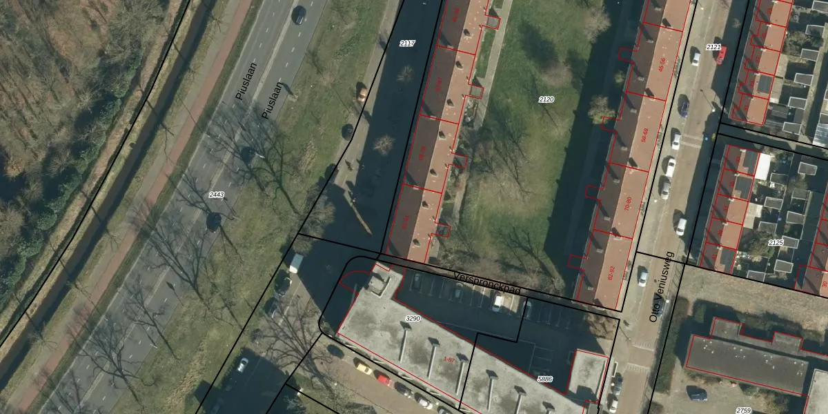 Het perceel waarop Piuslaan 85 staat heeft een oppervlakte van 5186 m². Dit is een zeer groot perceel. De perceeloppervlakte wordt geregistreerd door het Kadaster. Gedetailleerde informatie over de maten van dit perceel kunt u vinden in het rapport Kadastrale kaart met maatvoering van Piuslaan 85.