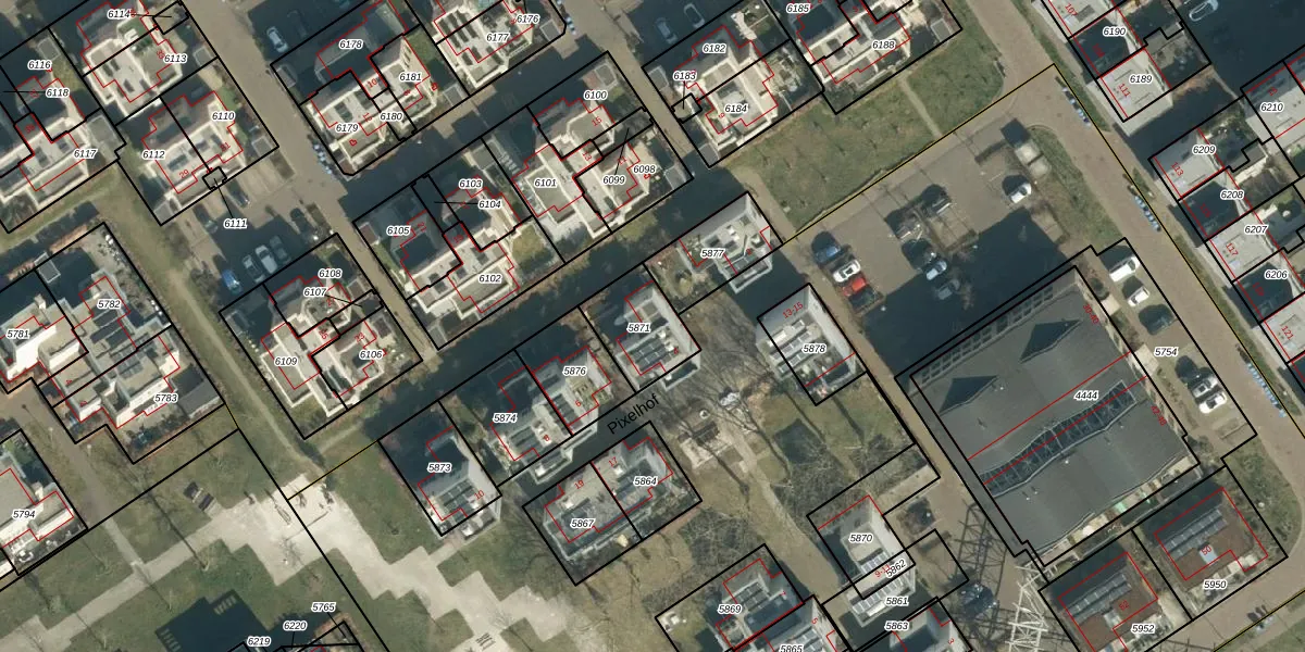 Het perceel waarop Pixelhof 4 staat heeft een oppervlakte van 193 m². Dit is een middelgroot perceel. De perceeloppervlakte wordt geregistreerd door het Kadaster. Gedetailleerde informatie over de maten van dit perceel kunt u vinden in het rapport Kadastrale kaart met maatvoering van Pixelhof 4.