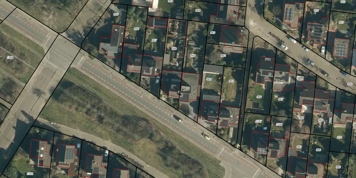 Gebruik de zoekbalk of klik op een perceel voor informatie over de adressen binnen dit perceel.