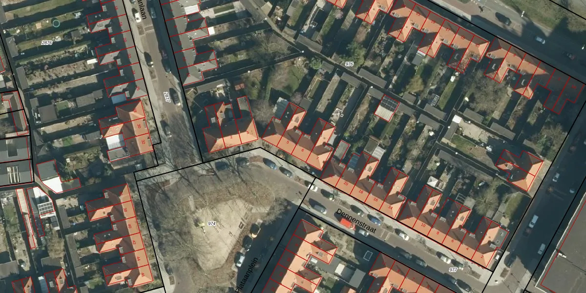 Het perceel waarop Plataanplein 5 staat heeft een oppervlakte van 1,1 ha. Dit is een zeer groot perceel. De perceeloppervlakte wordt geregistreerd door het Kadaster. Gedetailleerde informatie over de maten van dit perceel kunt u vinden in het rapport Kadastrale kaart met maatvoering van Plataanplein 5.