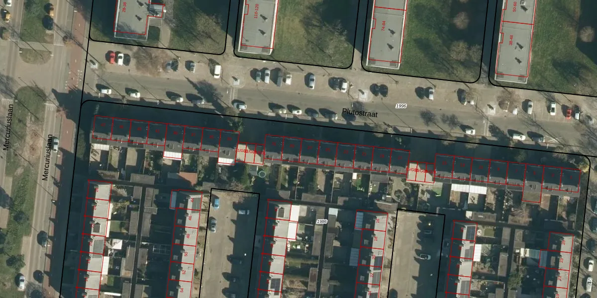Het perceel waarop Plutostraat 29 staat heeft een oppervlakte van 1,1 ha. Dit is een zeer groot perceel. De perceeloppervlakte wordt geregistreerd door het Kadaster. Gedetailleerde informatie over de maten van dit perceel kunt u vinden in het rapport Kadastrale kaart met maatvoering van Plutostraat 29.
