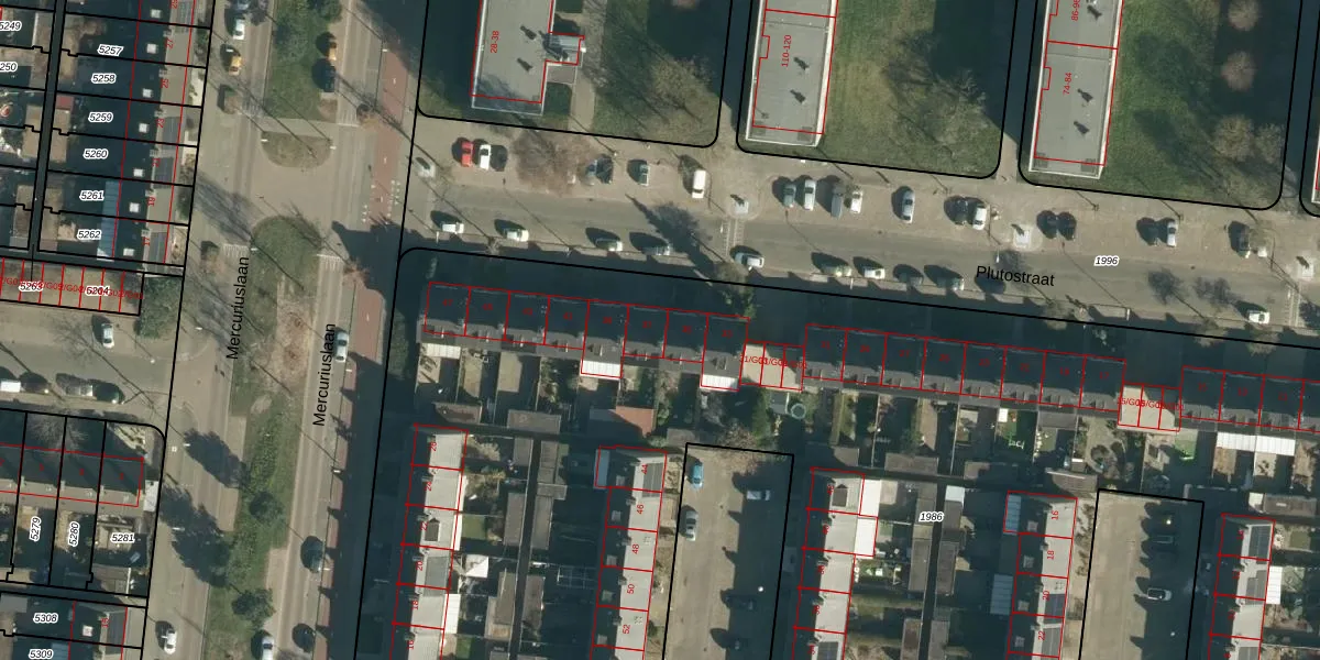 Het perceel waarop Plutostraat 37 staat heeft een oppervlakte van 1,1 ha. Dit is een zeer groot perceel. De perceeloppervlakte wordt geregistreerd door het Kadaster. Gedetailleerde informatie over de maten van dit perceel kunt u vinden in het rapport Kadastrale kaart met maatvoering van Plutostraat 37.