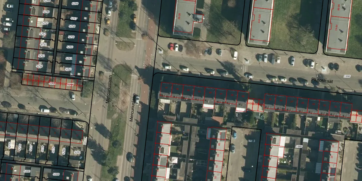 Plutostraat 45 is gelegen op kadastraal perceel WSL01L1986. Deze kadastrale aanduiding is uniek en wordt gebruikt door het Kadaster om eigendomsrechten en andere zakelijke rechten vast te leggen. Het perceel maakt onderdeel uit van de kadastrale gemeente Woensel.