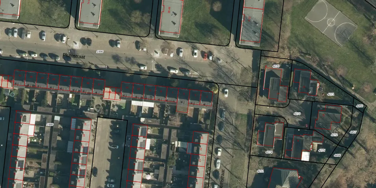 Het perceel waarop Plutostraat 5 staat heeft een oppervlakte van 1,1 ha. Dit is een zeer groot perceel. De perceeloppervlakte wordt geregistreerd door het Kadaster. Gedetailleerde informatie over de maten van dit perceel kunt u vinden in het rapport Kadastrale kaart met maatvoering van Plutostraat 5.