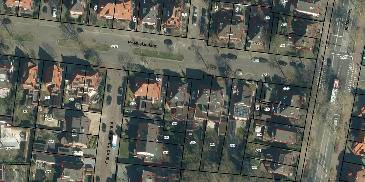 Het perceel waarop Poelhekkelaan 9 staat heeft een oppervlakte van 387 m². Dit is een groot perceel. De perceeloppervlakte wordt geregistreerd door het Kadaster. Gedetailleerde informatie over de maten van dit perceel kunt u vinden in het rapport Kadastrale kaart met maatvoering van Poelhekkelaan 9.