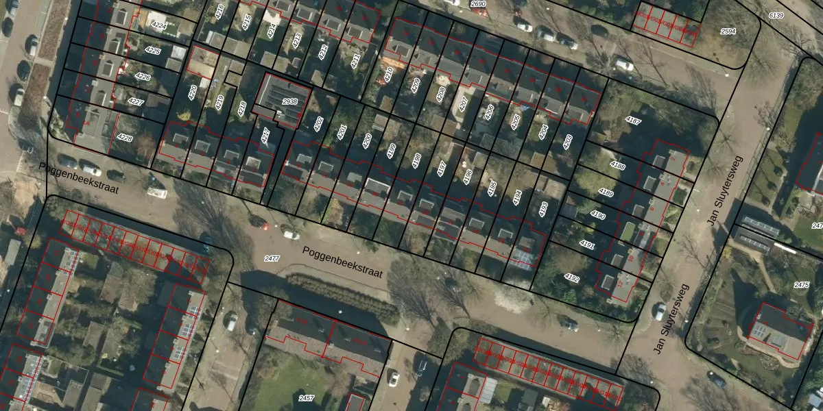 Het perceel waarop Poggenbeekstraat 17 staat heeft een oppervlakte van 198 m². Dit is een middelgroot perceel. De perceeloppervlakte wordt geregistreerd door het Kadaster. Gedetailleerde informatie over de maten van dit perceel kunt u vinden in het rapport Kadastrale kaart met maatvoering van Poggenbeekstraat 17.