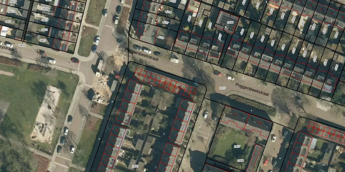 Poggenbeekstraat 2-G08 is gelegen op kadastraal perceel STM00F2455. Deze kadastrale aanduiding is uniek en wordt gebruikt door het Kadaster om eigendomsrechten en andere zakelijke rechten vast te leggen. Het perceel maakt onderdeel uit van de kadastrale gemeente Stratum.