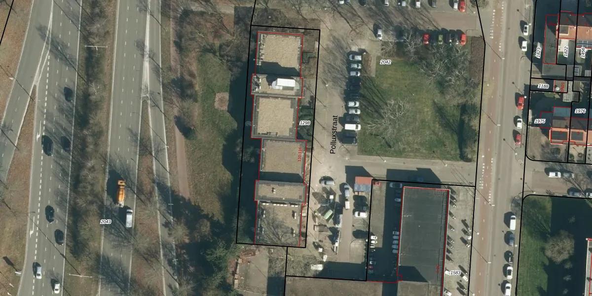 Het perceel waarop Polluxstraat 112-06 staat heeft een oppervlakte van 1727 m². Dit is een zeer groot perceel. De perceeloppervlakte wordt geregistreerd door het Kadaster. Gedetailleerde informatie over de maten van dit perceel kunt u vinden in het rapport Kadastrale kaart met maatvoering van Polluxstraat 112-06.