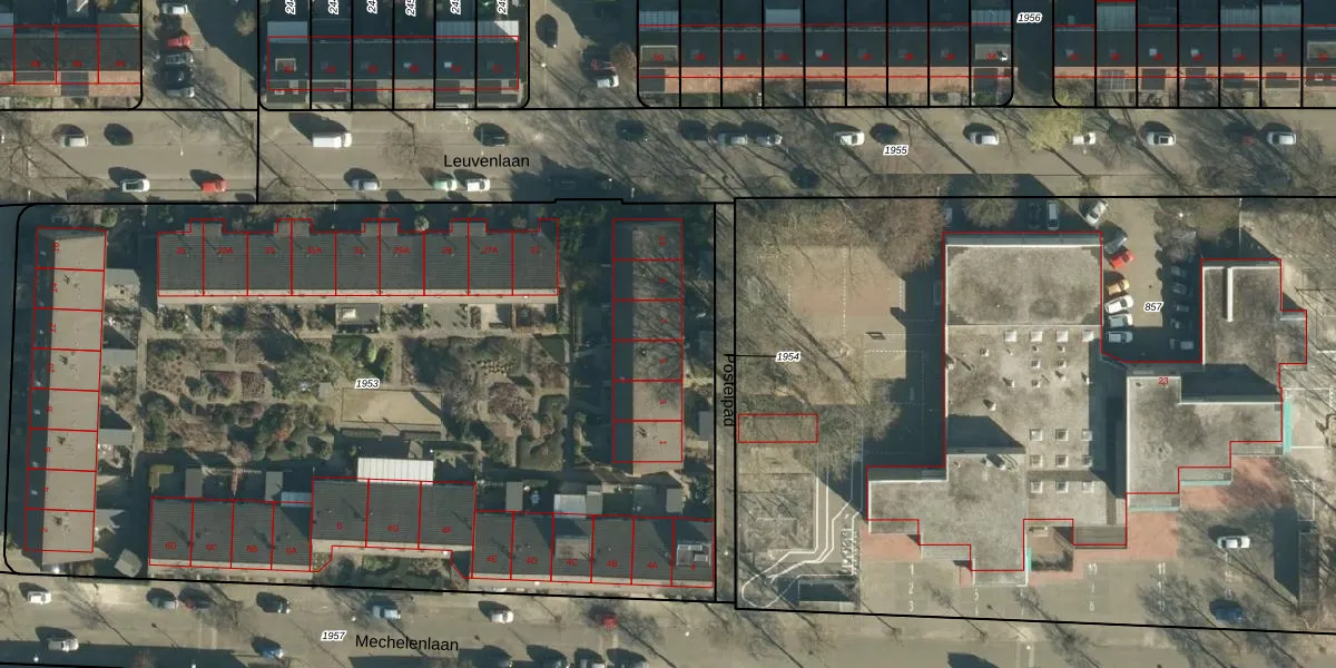 Het perceel waarop Postelpad 7 staat heeft een oppervlakte van 6071 m². Dit is een zeer groot perceel. De perceeloppervlakte wordt geregistreerd door het Kadaster. Gedetailleerde informatie over de maten van dit perceel kunt u vinden in het rapport Kadastrale kaart met maatvoering van Postelpad 7.