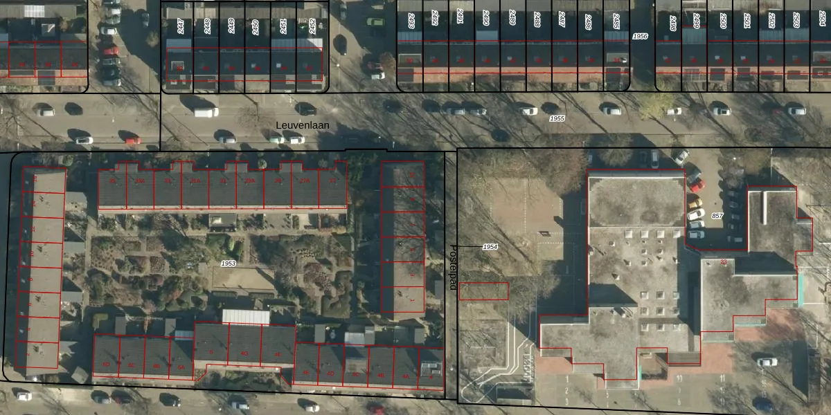 Het perceel waarop Postelpad 9 staat heeft een oppervlakte van 6071 m². Dit is een zeer groot perceel. De perceeloppervlakte wordt geregistreerd door het Kadaster. Gedetailleerde informatie over de maten van dit perceel kunt u vinden in het rapport Kadastrale kaart met maatvoering van Postelpad 9.