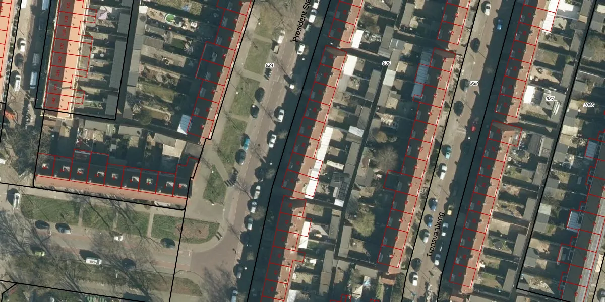 Het perceel waarop President Steynstraat 33 staat heeft een oppervlakte van 8690 m². Dit is een zeer groot perceel. De perceeloppervlakte wordt geregistreerd door het Kadaster. Gedetailleerde informatie over de maten van dit perceel kunt u vinden in het rapport Kadastrale kaart met maatvoering van President Steynstraat 33.