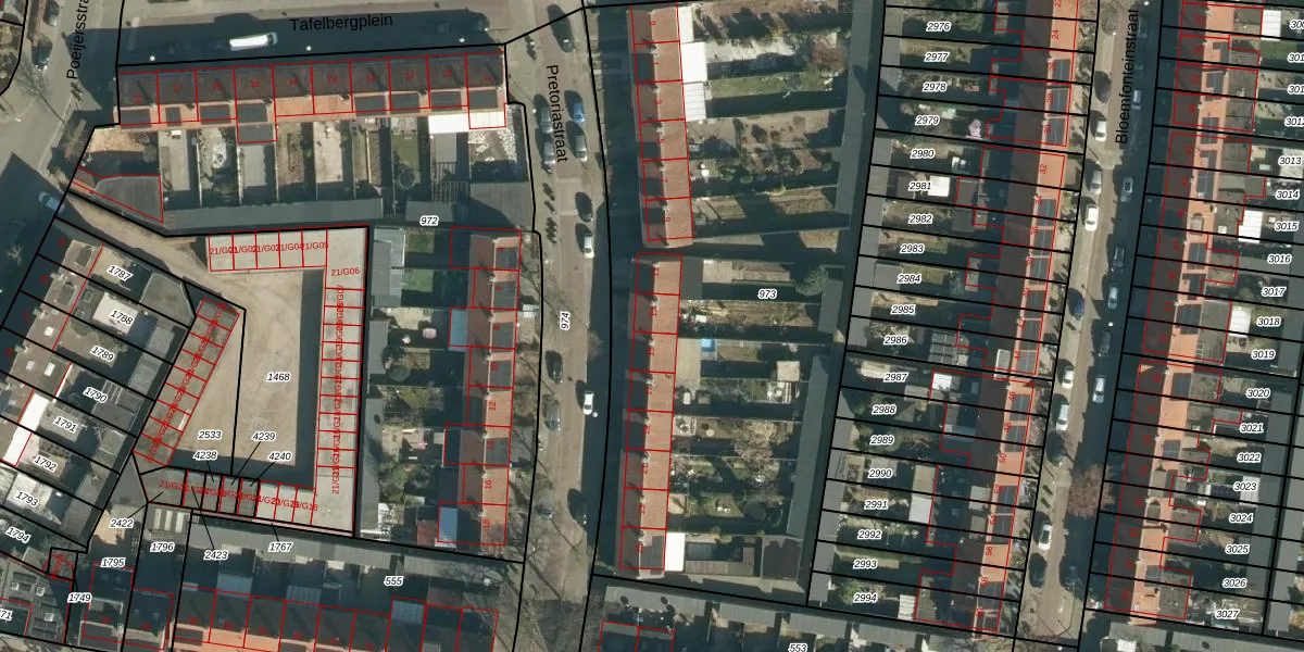Pretoriastraat 13 is gelegen op kadastraal perceel TGR00E973. Deze kadastrale aanduiding is uniek en wordt gebruikt door het Kadaster om eigendomsrechten en andere zakelijke rechten vast te leggen. Het perceel maakt onderdeel uit van de kadastrale gemeente Tongelre.